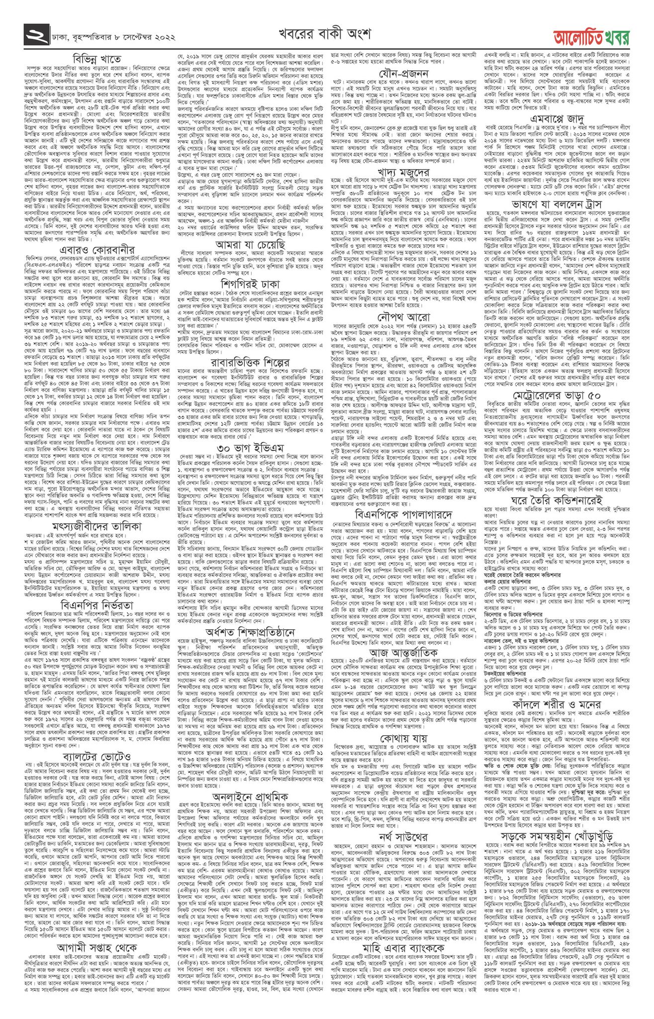 সেপ্টেম্বর ৮, ২০২২ FacebookInstagramTwitterYoutube সর্বশেষ খবর ঢাকাস্থ গলাচিপা উপজেলা কল্যান সমিতির কমিটি গঠন পটুয়াখালী মার্চ ১৩, ২০২৬ গলাচিপা জমিজমা নিয়ে বিরোধের জেরে সাংবাদিকসহ আহত ৫ পটুয়াখালী ডিসেম্বর ২৯, ২০২৫ ঝুপড়ি ঘরে স্বামী-স্ত্রীর মরদেহে চাঞ্চল্য, পটুয়াখালীর মহিপুরে দম্পতির রহস্যজনক মৃত্যু সারাদেশ নভেম্বর ১১, ২০২৫ ময়মনসিংহে বাসে দুর্বৃত্তের আগুন, চালকের মৃত্যু ময়মনসিংহ নভেম্বর ১১, ২০২৫ সংসদ নির্বাচনে ড্রোন ও পোস্টার নিষিদ্ধ, আচরণবিধি জারি করল নির্বাচন কমিশন আজকের আলোচিত নভেম্বর ১১, ২০২৫ বাড়িসংবাদআজকের পত্রিকা ৮ সেপ্টেম্বর ২০২২ইং তারিখের ই-পেপার ভাগ FacebookTwitterWhatsAppEmailছাপা আমাদের ইউটিউব চ্যানেলে সাবস্ক্রাইব করুন আমাদের ফেসবুক পেজে লাইক দিয়ে পাশে থাকুন ভাগ FacebookTwitterWhatsAppEmailছাপা সেপ্টেম্বর ৮, ২০২২ alochito khabor FacebookInstagramTwitterYoutube এ সম্পর্কিত আরো লেখা ৯ অক্টোবরের ই-পেপার ২৯ ফেব্রুয়ারি ২০২৪ ইং তারিখের ই-পেপার বহিঃশক্তির যে কোনো আক্রমণ মোকাবিলায় সশস্ত্র বাহিনীকে সক্ষম করে তুলতে বিভিন্ন পদক্ষেপ নেয়া হয়েছে- প্রধানমন্ত্রী তুরস্ক-সিরিয়ার ভূমিকম্পের এক সপ্তাহ পর ৪১ হাজারের বেশি মানুষের মরদেহ উদ্ধার দুই বছরের বেশি সময় পর আবারও লড়াইয়ে নামছেন বর্তমান ফুটবল বিশ্বের সবচেয়ে বড় দুই তারকা মেসি ও রোনালদো শনিবার থেকে শীতের তীব্রতা কমতে পারে ; যশোরে সর্বনিম্ন তাপমাত্রা ৯ ডিগ্রি সেলসিয়াস ২৮ ডিসেম্বর ২০২২ ইং তারিখের ই-পেপার ২৬ ডিসেম্বর ২০২২ ইং তারিখের ই-পেপার ২৫ ডিসেম্বর ২০২২ ইং তারিখের ই-পেপার ২৪ ডিসেম্বর ২০২২ইং তারিখের ই-পেপার ২৩ ডিসেম্বর ২০২২ইং তারিখের ই-পেপার ২২ ডিসেম্বর ২০২২ইং তারিখের ই-পেপার Latest Posts পটুয়াখালী ঢাকাস্থ গলাচিপা উপজেলা কল্যান সমিতির কমিটি গঠন পটুয়াখালী গলাচিপা জমিজমা নিয়ে বিরোধের জেরে সাংবাদিকসহ আহত ৫ সারাদেশ ঝুপড়ি ঘরে স্বামী-স্ত্রীর মরদেহে চাঞ্চল্য, পটুয়াখালীর মহিপুরে দম্পতির রহস্যজনক মৃত্যু ময়মনসিংহ ময়মনসিংহে বাসে দুর্বৃত্তের আগুন, চালকের মৃত্যু আলোচিত খবর সংসদ নির্বাচনে ড্রোন ও পোস্টার নিষিদ্ধ, আচরণবিধি জারি করল নির্বাচন কমিশন সচিবালয় অভিমুখে ইবতেদায়ি শিক্ষকদের মিছিল পুলিশের বাধায় ছত্রভঙ্গ আমরা শাপলা আদায় করে নেব: সারজিস নাইজেরিয়ায় ভয়াবহ ট্যাংকার বিস্ফোরণে নিহত ৩৮
